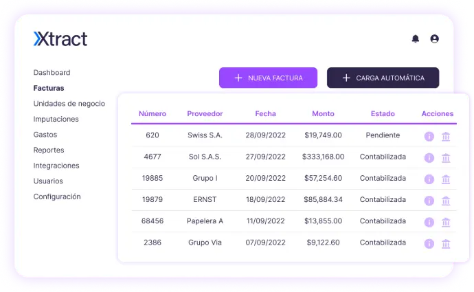 Xtract automatiza el procesamiento de facturas desde su recepción hasta su registro en el ERP.